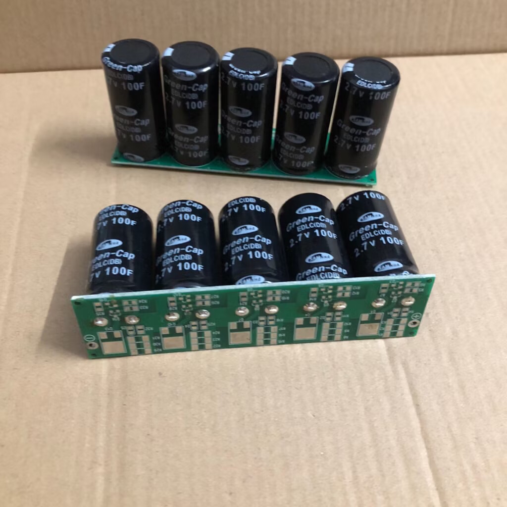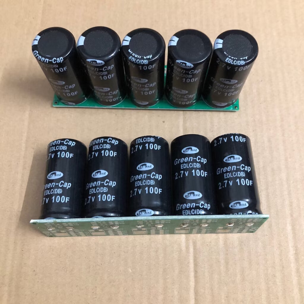 Khối siêu tụ điện 13.5V 20F thanh lý. Khối tụ gồm có 05 siêu tụ 2.7V 100F hàn nối tiếp nhau trên mạch PCB.